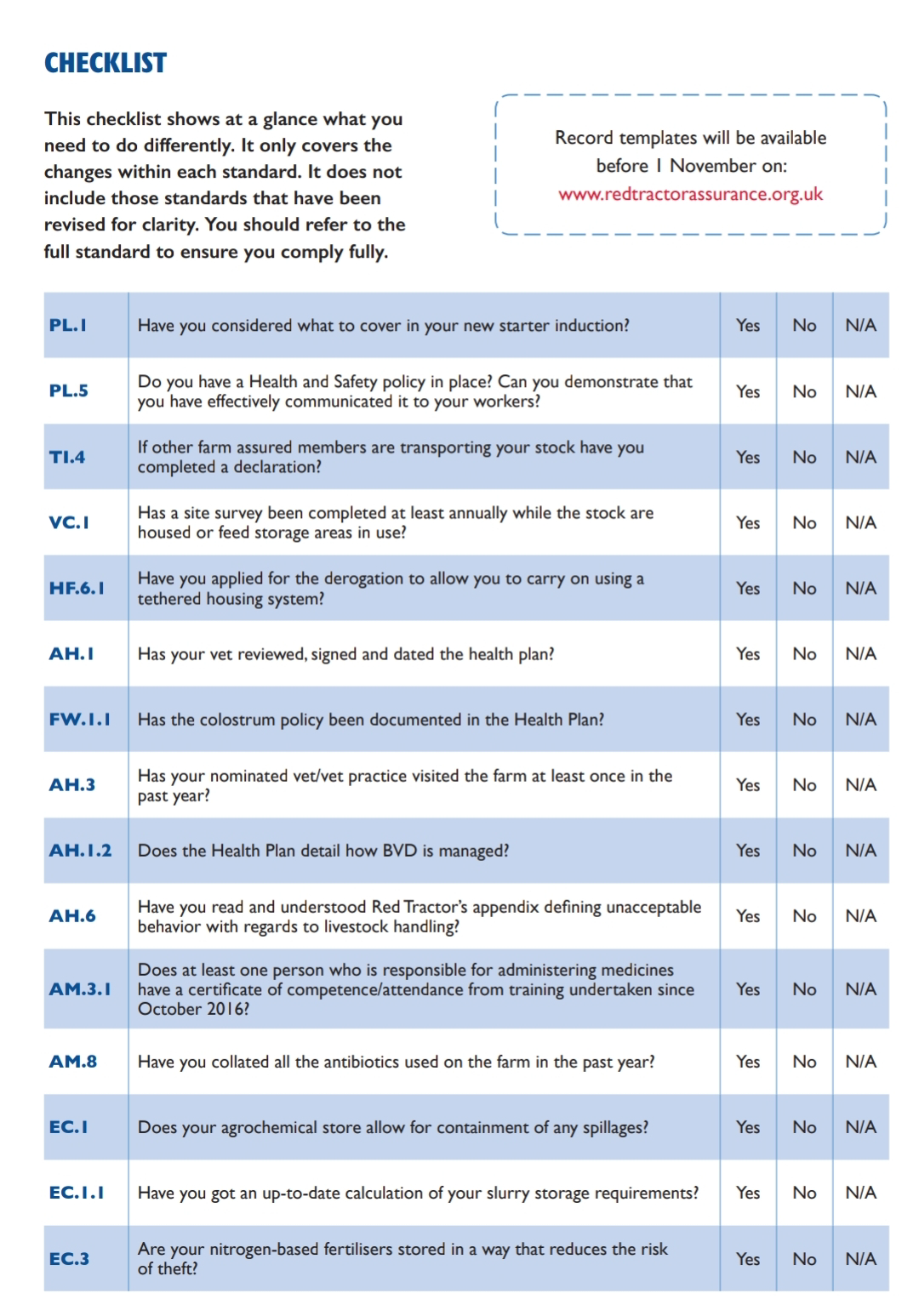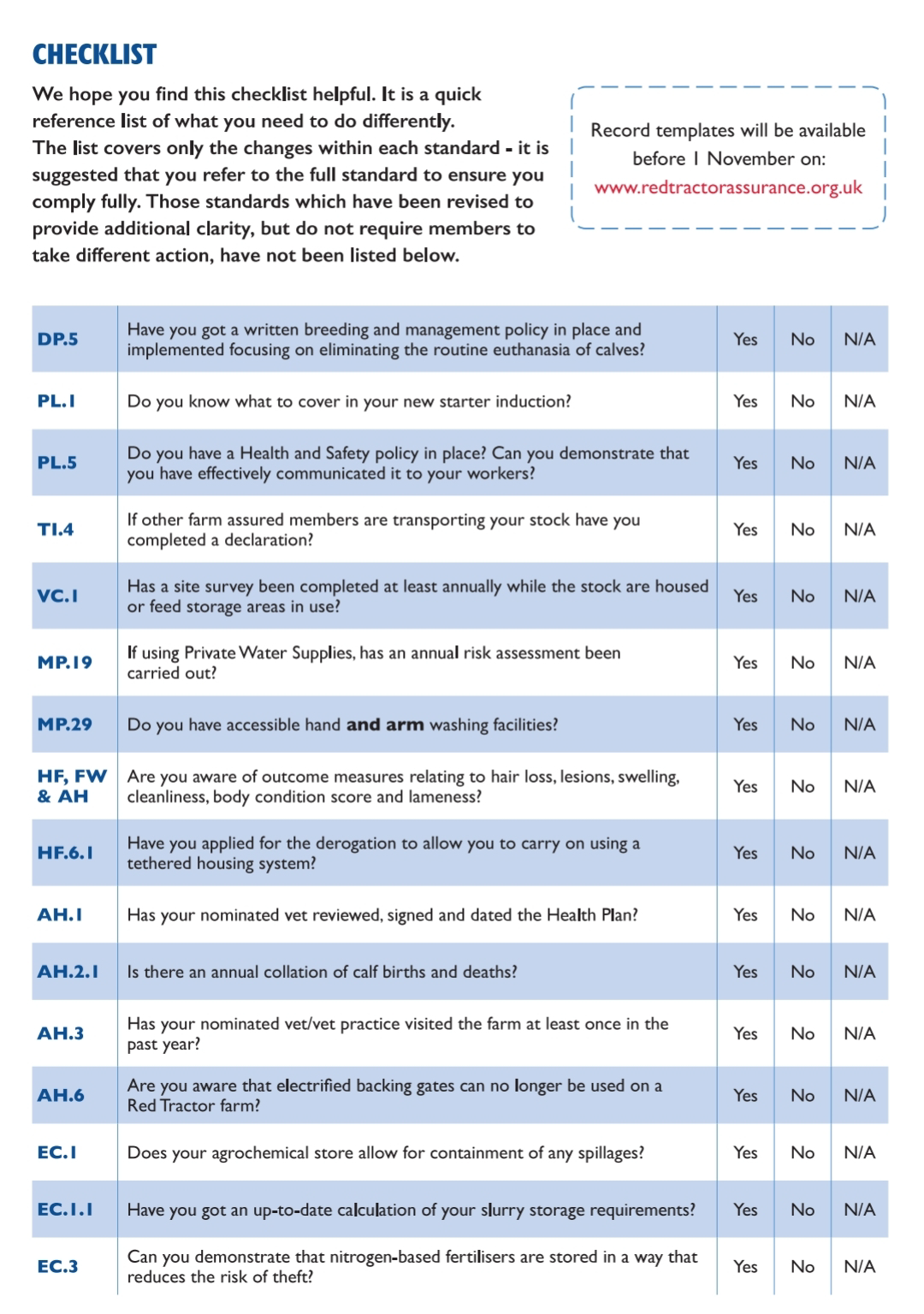 From the 1st November 2021 the new Red Tractor Standards come into force for Dairy, Beef and Lamb. This means all inspections and herd health plans due after 31st October will have to include the new standards.